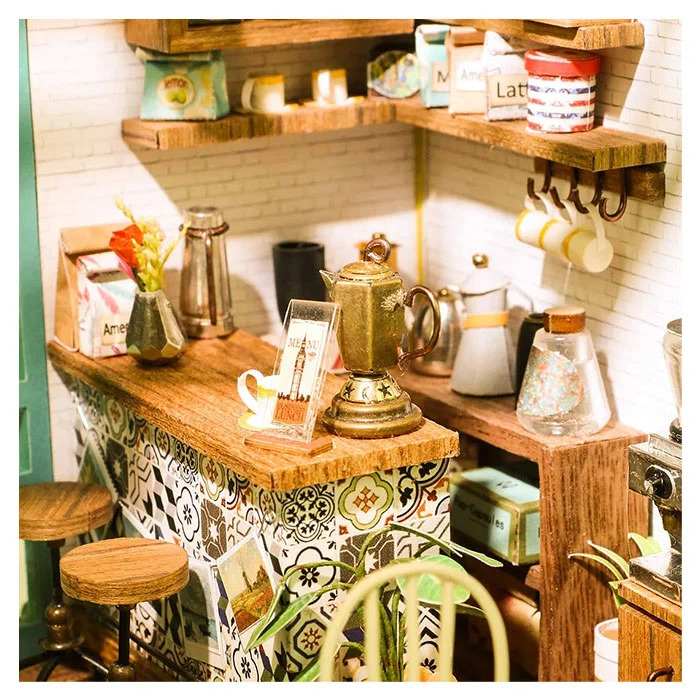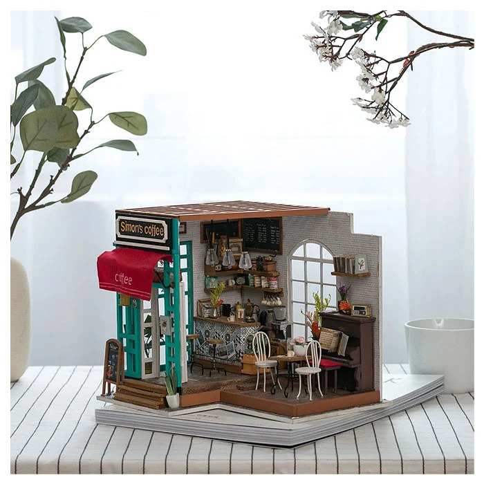 3D Wooden Puzzle Simon’s Coffee Cafe Fully Assembled with Display Case