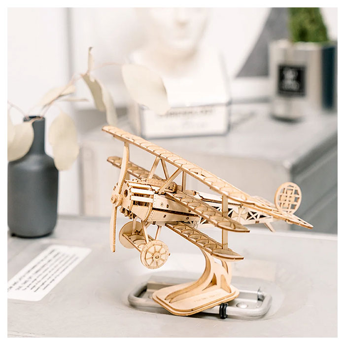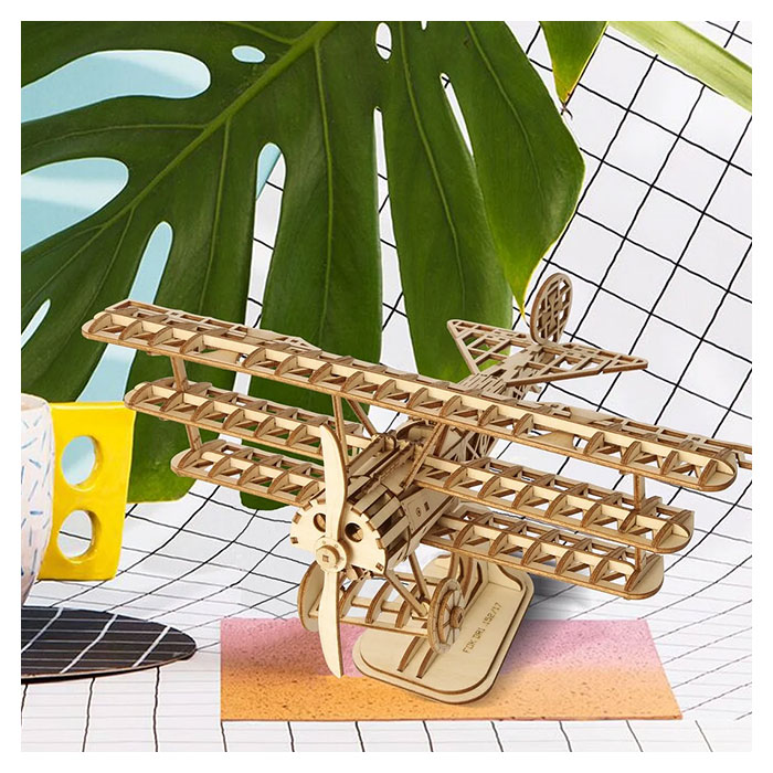 Build this 145 pieces miniature wooden model of a Vintage Bi-Plane. Very detailed with many finely laser-cut pieces. It can be painted to show off even more detail. Great choice as a birthday, Christmas, back to school or Valentine’s Day gift for boys, girls, friends, family members, or that special someone. Recommended for ages 10 and up, watch out for small parts around younger childre