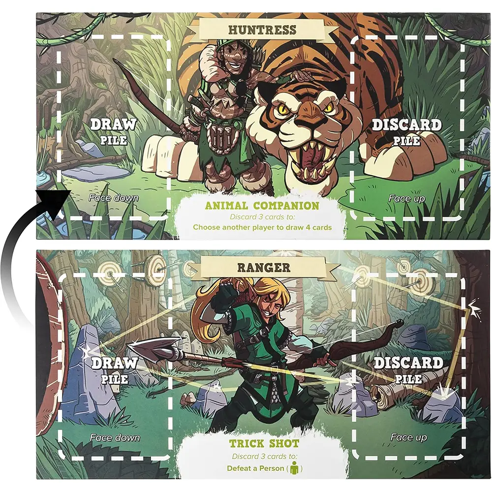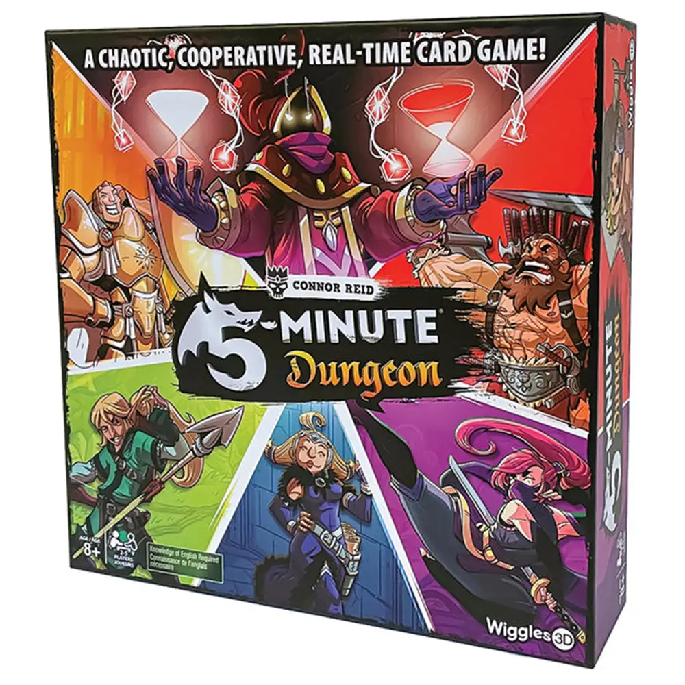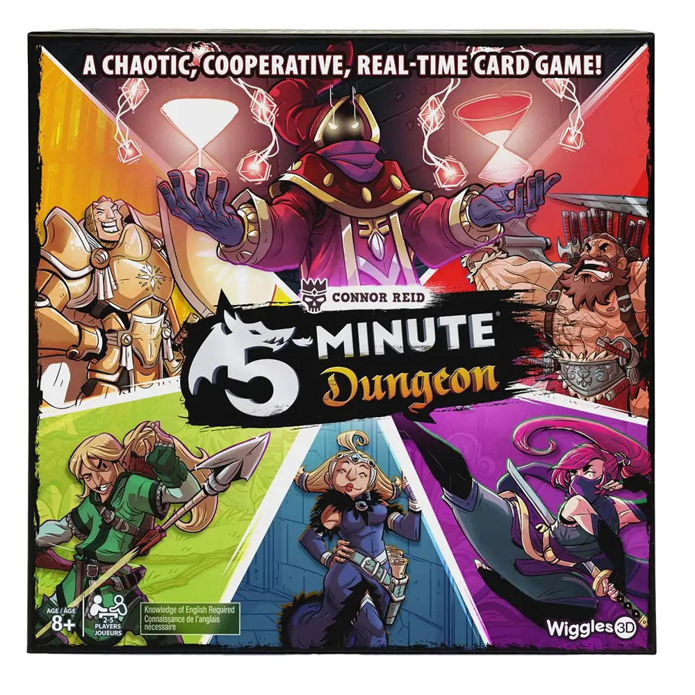 Battle together…or perish in the game of 5-Minute Dungeon! You and your party of intrepid heroes are trapped in a series of five deadly dungeons. To make your way out, you must battle dangerous monsters, overcome treacherous obstacles and defeat maniacal Dungeon Bosses – all within 5 minutes! Start playing this thrilling card game by selecting one of ten heroes and the corresponding weapons deck. Choose monster, obstacle and dungeon boss cards and race to battle them all! In this travel game, perfect for taking wherever you go, there are no turns – all players slap their cards down as fast as they can! It takes teamwork and quick thinking to battle what lurks in the dungeon. So gather your courage and your wits and play the exciting game of 5-Minute Dungeon!