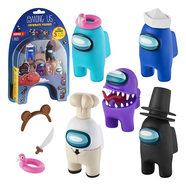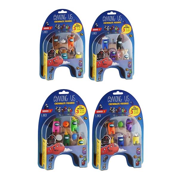 - GET 5 AMONG US FIGURES AT ONCE. These are small toys representing the game’s characters, including the Peeled, the Clogged, the Hooded Figure, the New Year one, and an unknown extra!
