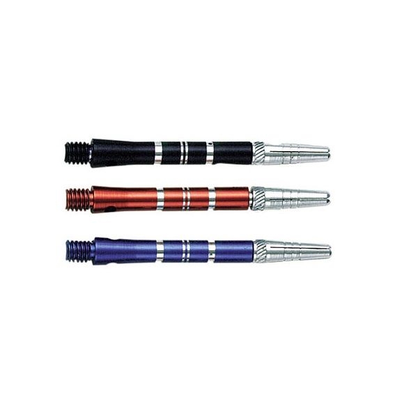 This shaft has revolutionized the dart world. Anodized Aluminum 2BA Dart Shafts Medium sized has a spinning top that will rotate the flight for an incoming dart to reduce deflections improve scoring. This shaft does not require a special set of flights. The Top Spin shaft will hold any conventional flight and therefore will reduce player’s expense. The Top Spin shaft is the ultimate spinning shaft. Available in Medium and Short lengths and 3 different colours. Each package comes with three shafts of the same length and colour. 550683 Medium Black, 550684 Medium Blue, 550685 Medium Red, 550680 Short Black, 550681 Short Blue, 550682 Short Red.