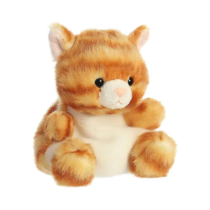 Meow Kitty is a lovable Palm Pals plush, showcasing a soft orange tabby pattern with white accents on its belly and paws. With its bright, inquisitive eyes and plushy feel, this kitty is perfect for cuddles and companionship. Meow Kitty adds a playful touch to any plush collection, making it a purr-fect friend for feline fans of all ages.