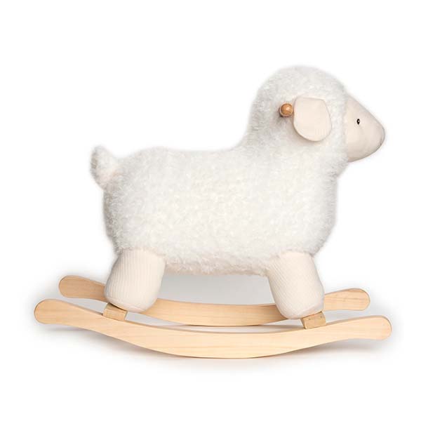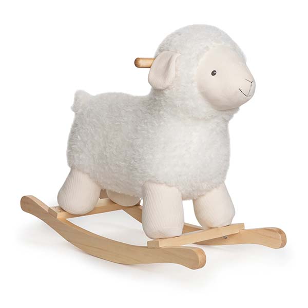 - The 21.5-inch height of the Lamb Rocker, featuring secure wooden pegs at the head and a face full of embroidered sweet details, is the perfect size for little ones to enjoy a safe, super comfortable ride.