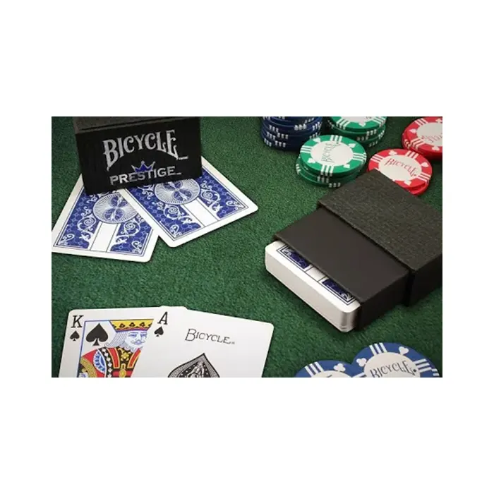 Perfect for a neighborhood game or a professional tournament, the Bicycle Prestige 100% Plastic Deck offers unmatched durability. Many professionals prefer the flexibility and durability of plastic cards, and the Bicycle Prestige deck is the only 100% plastic card to offer a paper-like feel.