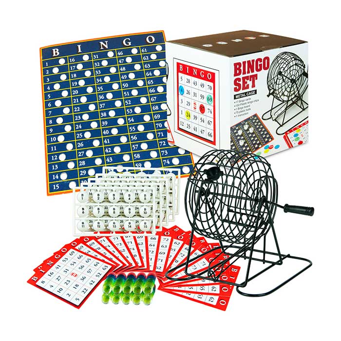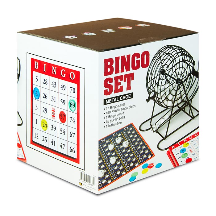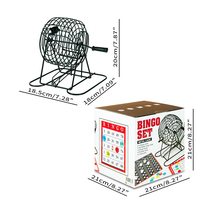 - Elevate your game night with our Black Metal Cage Bingo Set.