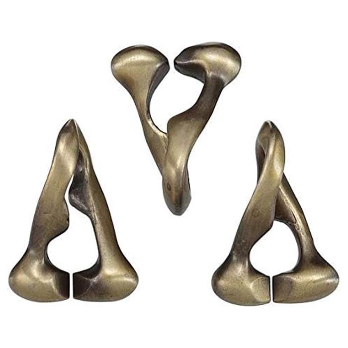 Engage your mind with the Cast Trinity Hanayama, a sophisticated metal brainteaser designed by Kyoo Wong. This puzzle features three intricately interlocked metal pieces that form a seamless, grip-free design, inviting you to explore multiple possible configurations beyond the ones shown. Its sleek, organic form makes solving a stimulating exercise in spatial awareness and patience.