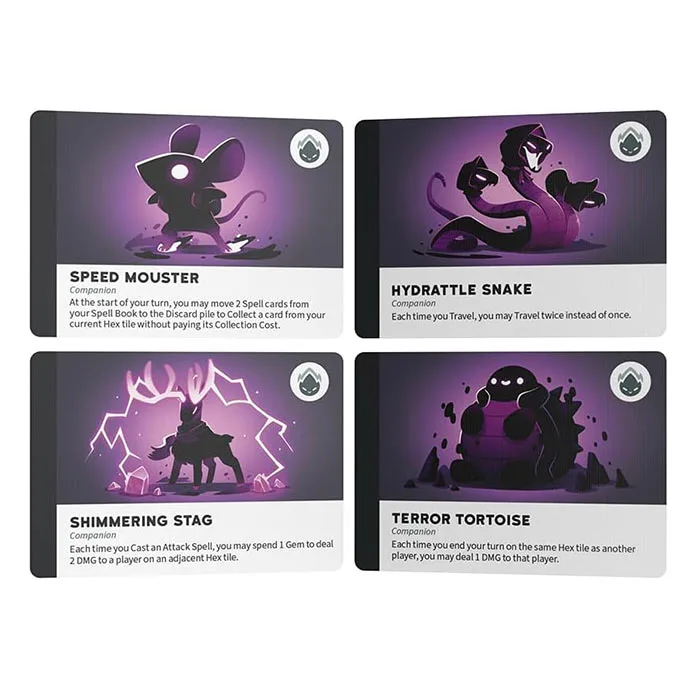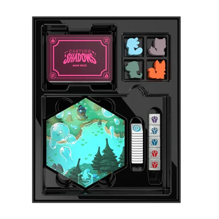 Explore a dark, enchanting world and battle your opponents in this 2-4 player turn-based competitive strategic board game. Throughout the game, you will collect resources, learn new spells, summon a companion, and unlock your Shadow Form, all in the quest to become the ultimate Shadow Caster. The last player standing after the supernatural showdown wins the game.