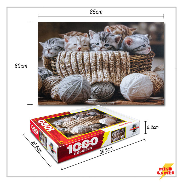 Close Knit Kits is a 1000 pieces jigsaw puzzle from Mind Games. This challenging puzzle is made of high quality cardboard and snaps together easily with a precise fit.
