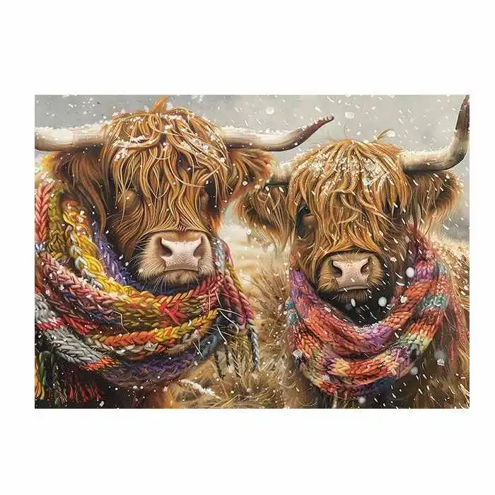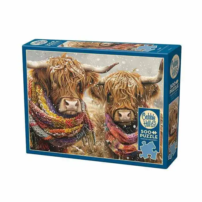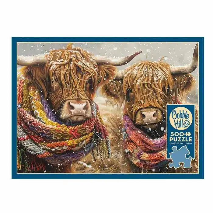 Get cozy with two Highland cows in this charming 500 piece puzzle. Wrapped in colorful knitted scarves, their eyes peek out from the long hair covering their faces as snow gently falls in the field. Measuring at 26.625″ x 19.25″, it offers the perfect challenge without being overwhelming. Piece by piece, you’ll bring the vivid highland cows to life, immersing yourself in their natural habitat. Whether you’re a seasoned puzzler or just starting out, this puzzle guarantees hours of entertainment and relaxation. So gather your friends or enjoy some solo time as you dive into the fascinating world of animals with the Cobble Hill Brrrr