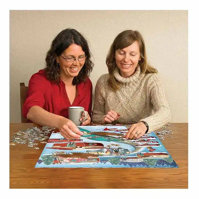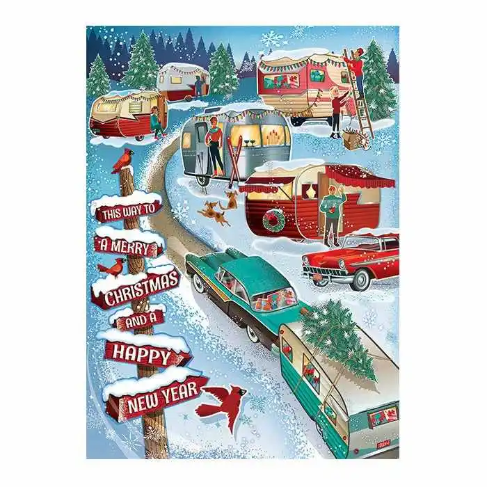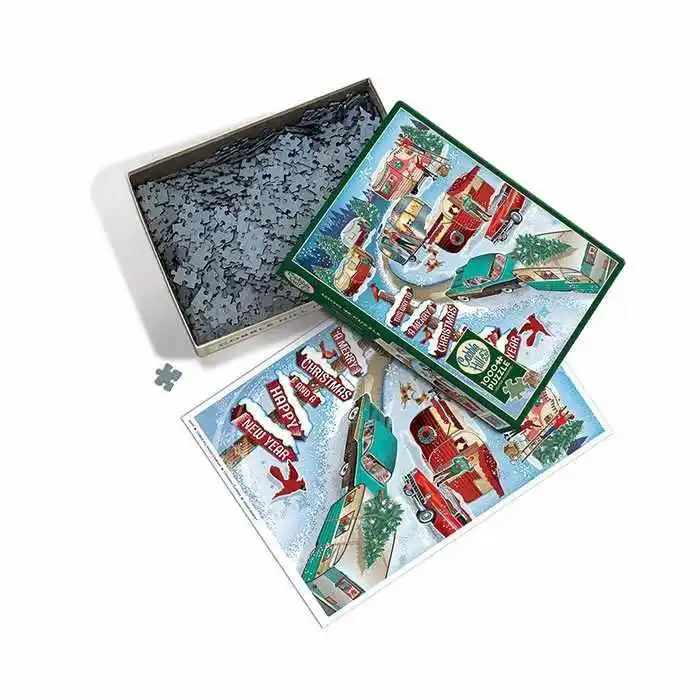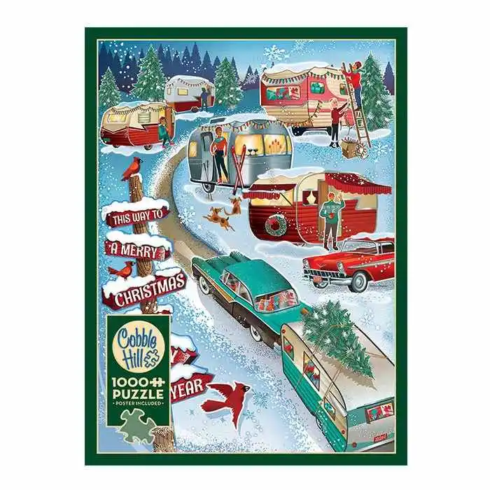 Follow the road to the Christmas Campers decorating their trailers and trees for a wonderful winter celebration. A 1000 piece puzzle with a nostalgic flair.