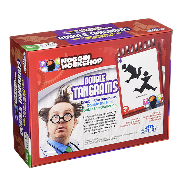 Double the tangrams? double the fun! double the challenge! contains 100 challenging riddles to bend your mind in new ways. Each puzzle requires the full set of seven geometric pieces to solve it. There may be more than one solution, but can you come up with at least one? we double dare you to try! this brain game is sure to leave you Puzzled!