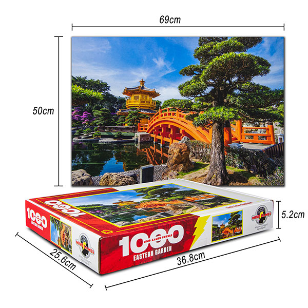 Eastern Garden is a 1000 pieces jigsaw puzzle from Mind Games. This challenging puzzle is made of high quality cardboard and snaps together easily with a precise fit.
