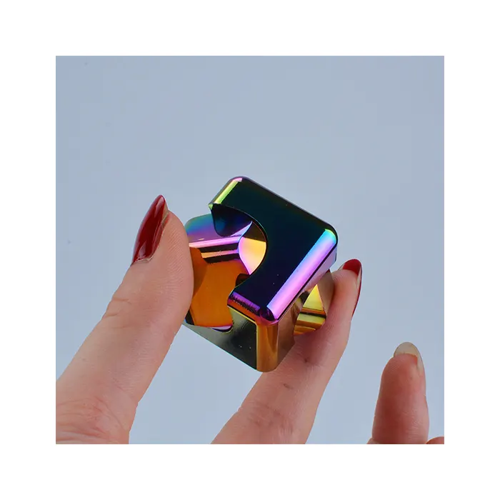The Fidget Cube Spinner Toy is a metal 2-in-1 gadget combining a fidget puzzle block and a spinner. It features a double Z symbol when spun and detachable magnetic tops for solo spinning. This toy helps alleviate stress and anxiety, calms nerves, and combats habits like nail-biting and smoking. It’s a fun addition to any desk and an ideal gift for children, adults, and anyone seeking stress relief.