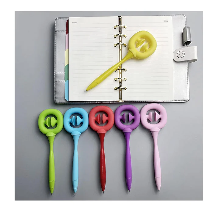 Fidget noisemaker pen is made of high-quality, non-toxic, durable and lightweight plastic and silicone material, also in non-fading bright colors. Our novelty pens are designed with a comfortable grip and a ballpoint that dispenses ink from the cartridge smoothly