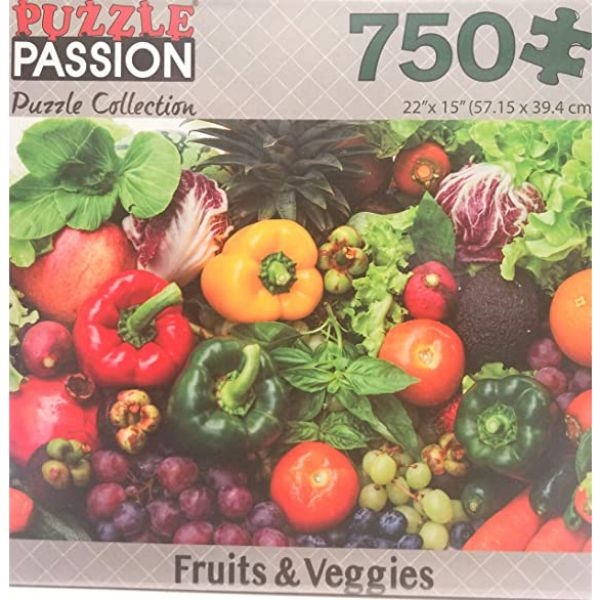 Put your skills to the test with this colorful Fruits & Veggies 750 Piece Puzzlejigsaw puzzle! A fun challenge that makes for an amazing display piece once completed. The puzzle pieces are secured inside a bag and packaged in a full-color box with puzzle image for solving. Puzzles are a fun activity to do alone or in a group, and make a great gift for all ages at birthdays and holidays!