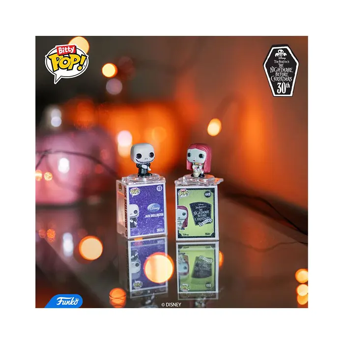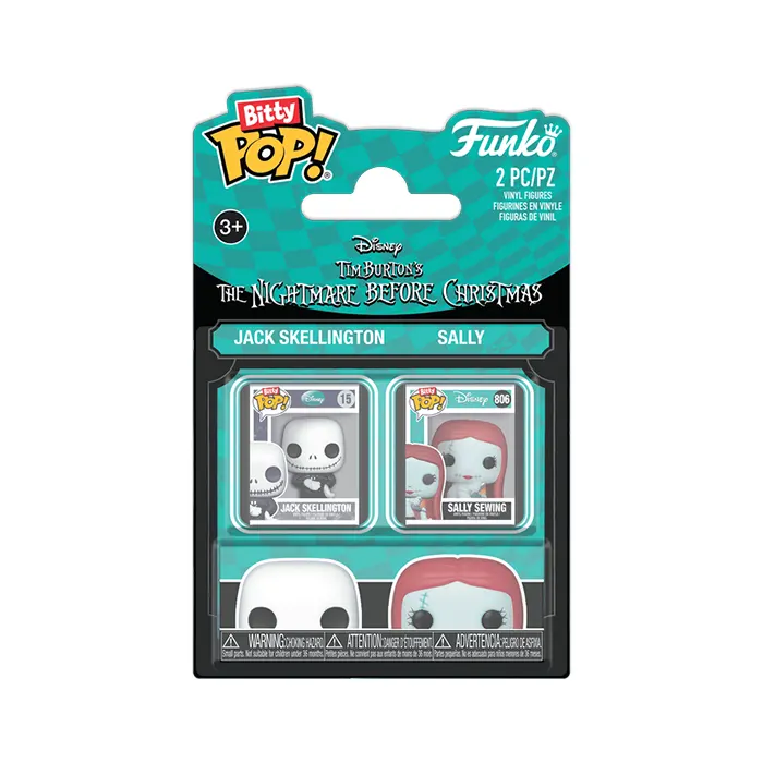 The world of POP! is getting bigger – and smaller – with Bitty POP! collectibles! Expand your Disney Tim Burton’s The Nightmare Before Christmas collection with this 2-pack featuring Bitty POP! Jack Skellington and Bitty POP! Sally! Bitty POP! collectibles are packaged in hard acrylic cases with detachable bottom lids. Detachable bottom lids double as acrylic bases, to which the Bitty POP! figures are adhered. Vinyl figures are approximately 0.9 in (2.3 cm) tall.