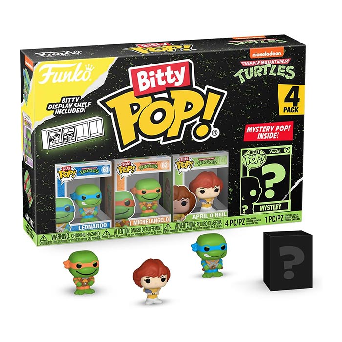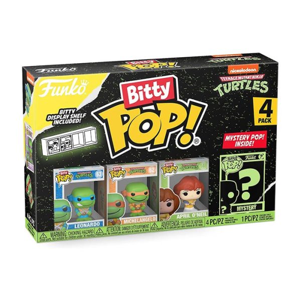 - This 4-pack includes Bitty Pop! Leonardo, Bitty Pop! Michelangelo, Bitty Pop! April O’Neil, and a mystery Bitty Pop! figure.