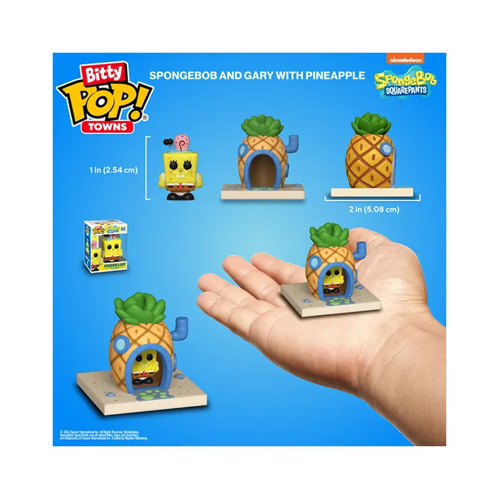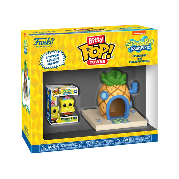Your favorite SpongeBob SquarePants POP! collectibles have been shrunk into Bitty POP! collectibles Expand your collection with Bitty POP! Town SpongeBob and Gary with Pineapple House!