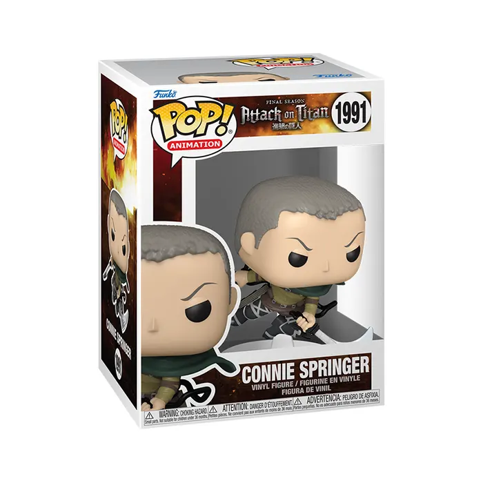 Push beyond the walls of your Attack on Titan collection with Pop! Connie Springer! This Scout is prepared for battle and ready to give his heart in defense of humanity. Vinyl figure is approximately 3.85 in (9.8 cm) tall.