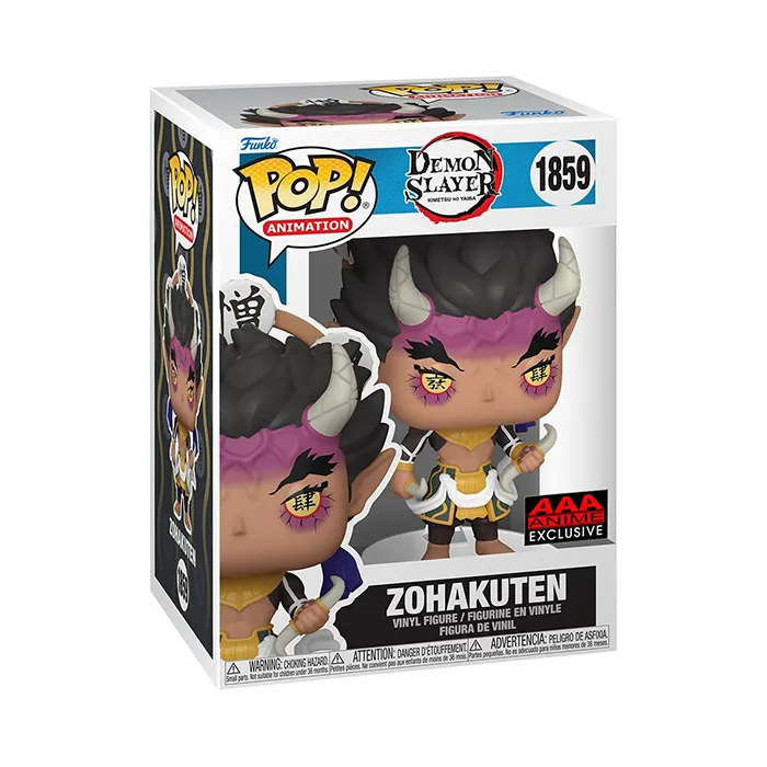 From the Demon Slayer series comes Muzan Kibutsji’s #4 Upper Rank demon – Hantengu as Zohakuten. Representing the “Hatred” form of Hantengu, Zohakutnen is displayed with his short black hair with spike and gold eyes with kanji of Upper Rank and the daiji of Four. Expand your Demon Slayer Funko Pop! collection with Zohakuten. This Demon Slayer Zohakuten Funko Pop Vinyl Figure #1859 – AAA Anime Exclusive measures approximately 4 1/2-inches tall and comes packaged in a window display box. Ages 3 and up.