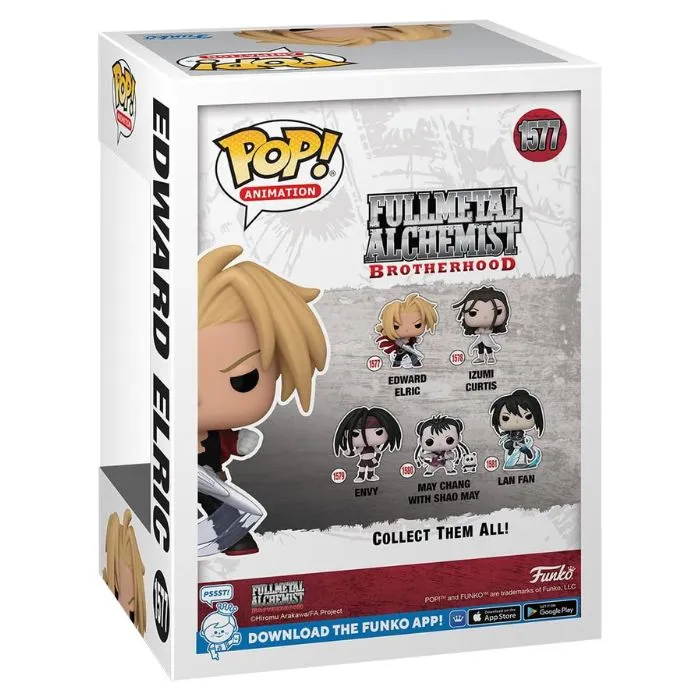 Pop! Edward Elric is on a mission to track down the Philosopher’s Stone and reestablish his brother’s body! Total your Fullmetal Chemist Brotherhood lineup after you welcome him into your Anime collection. Vinyl figure is roughly 4.2-inches tall.