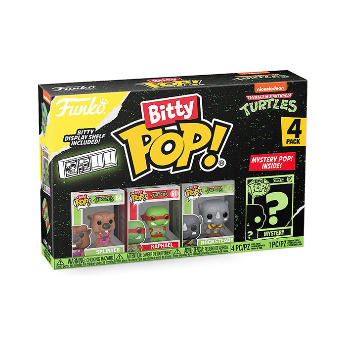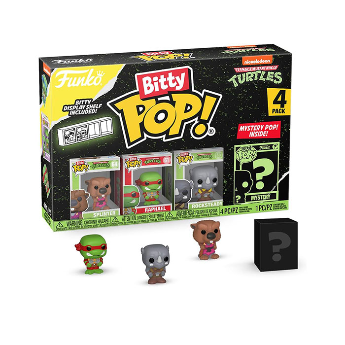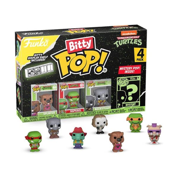 - This 4-pack includes Bitty Pop! Splinter, Bitty Pop! Raphael, Bitty Pop! Rocksteady, and a mystery Bitty Pop! figure.