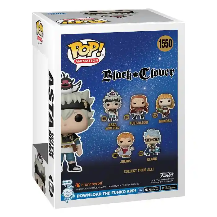 Bring home the dynamic duo of Asta and Nero from Black Clover with this officially licensed Funko Pop! figure. Asta, the determined and spirited protagonist, is depicted alongside his trusty companion, Nero. With meticulous attention to detail and vibrant colors, this figure captures the essence of these beloved characters. Whether you’re a dedicated collector or a fan of the anime series, this Funko Pop! is sure to become a prized piece in your collection.
