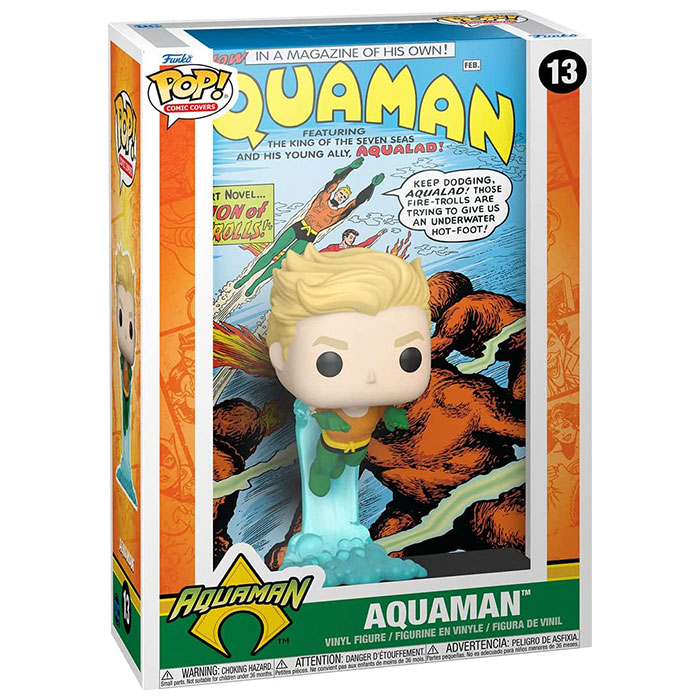 Make waves in your DC set with this exclusive Pop! Comic Covers Aquaman collectible. This special collectible features the cover art for DC Comics Number 1 Aquaman issue (1962), where Fire-Trolls threaten. This collectible also comes with a Pop! of Aquaman, who is riding a wave of water. The art and this Pop! come prepackaged in a protective case that can be hung on your wall! Make a splash in your DC collection with this exclusive collectible. Vinyl figure is approximately 5.54 inches tall.