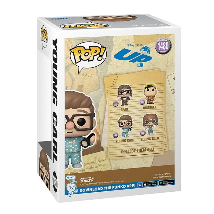 Adventure is looking up. Fulfill your Up collection with Pop. Young Carl with cast and flashlight by welcoming this determined adventurer into your own floating house! Vinyl figure is approximately 4.05-inches tall.