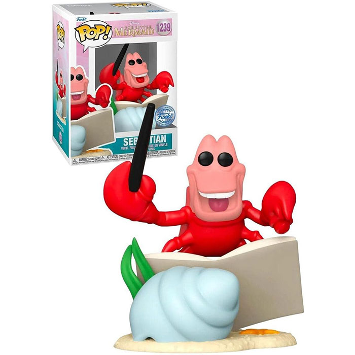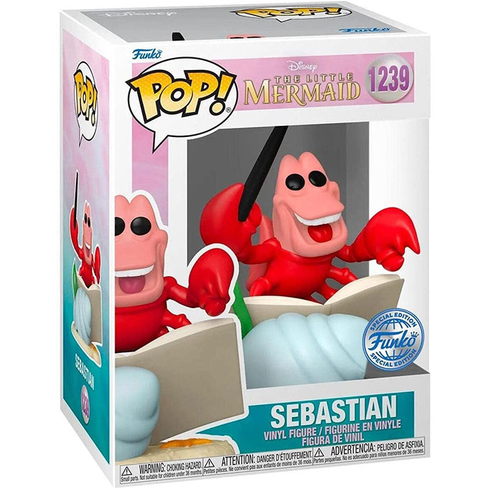 From Little Mermaid, Sebastian, as a stylized POP vinyl from Funko Figure stands 3 3/4 inches and comes in a window display box. Check out the other Little Mermaid figures from Funko Collect them all.