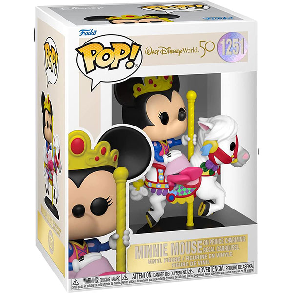- Pop! Minnie Mouse on Prince Charming Regal Carrousel is ready to take a spin through Fantasyland as she wears her royal princess outfit.