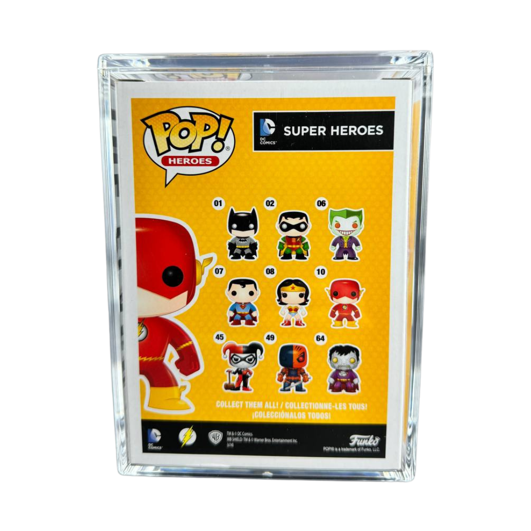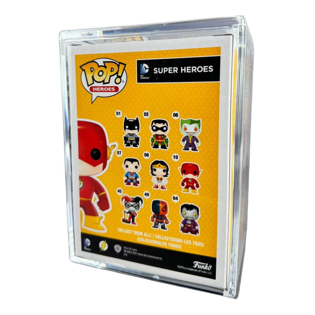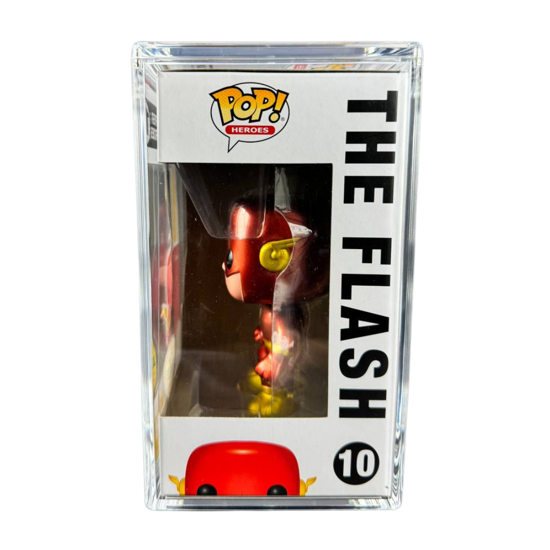 Inspired by designer toys and stylized character collectibles the world over, Funko is back with the POP Heroes Flash Metallic Chase! POP Heroes Flash depicts the classic appearance of The Flash in a unique style. The Flash wears a bright red and yellow suit, boots, and mask, with a lightning bolt symbol on the chest and jagged lines around the arms and waist, just the way you remember!