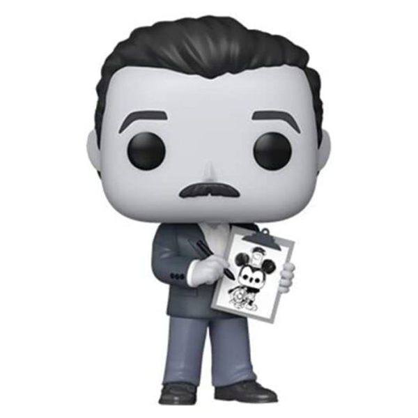 Bring a piece of Disney home with the man, the mouse, and the moment that started it all. Welcome Walt Disney himself into your home with Pop! Walt with Drawing. This charming greyscale Pop! captures the wonder of imagination with a sketch of Steamboat Willie held in Pop! Walt s hands. Vinyl figure is approximately 4-inches tall.