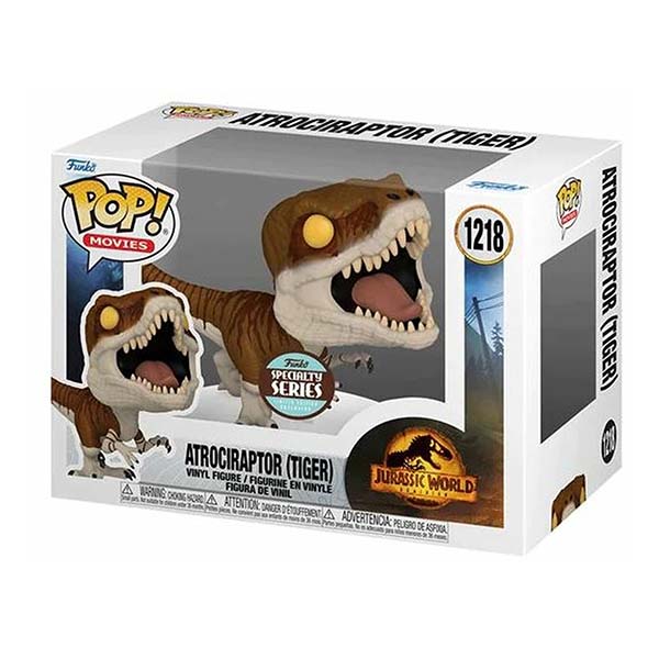 A big discovery is roaring your way! Capture Pop! Atrociraptor (Tiger) for your Jurassic World Dominion collection. Pop! Atrociraptor (Tiger) wants to follow you home and play a big role in expanding your set. Vinyl figure is approximately 2.99-inches tall.