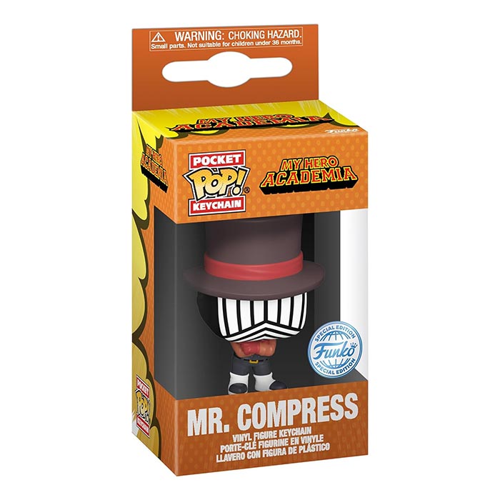 Pop! Keychain Mr. Compress is a member of the League of Villains who uses his Compress quirk as a means of fighting against the Pro Heroes. Assemble the League of Villains for your My Hero Academia collection with this exclusive Pop! Keychain Mr. Compress. Vinyl keychain is approximately 4-inches long.