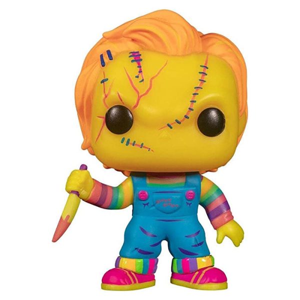 Your horror collection is about to light up the night! Fans of classic horror favorites can now enjoy Chucky in the dark – if they have the courage. When you shine a black light on this Child’s Play Chucky Black Light Pop! Vinyl Figure – Entertainment Earth Exclusive, it reacts with an eerie glow affect! The slasher Good Guy doll is creepier than ever in neon shades of yellow, orange, and pink, complete with scars and a bloody knife.