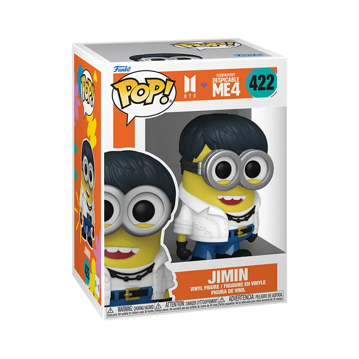Score front row seats with Pop! Jimin as a Minion! This member of K-pop sensation BTS is here to take the stage in your Pop! Rocks collection! Reunite him with the rest of the group in your music set as he rocks this new look inspired by Despicable Me 4. Vinyl figure is approximately 3.9-inches tall.