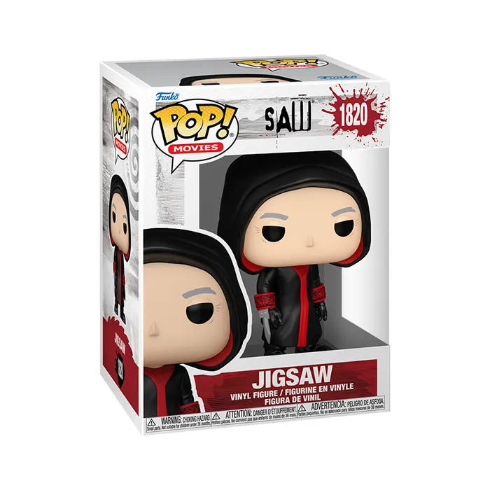 Let the games begin. POP! Jigsaw is here to put your collection to the test! Expand your horror set by making this menacing mastermind the next addition to your Saw lineup.Vinyl figure is approximately 3.9 in (9.9 cm) tall.