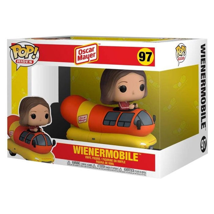 From Oscar Mayer comes Wienermobile, as a stylized Pop! Ride from Funko! The Figure stands 5 inches and comes in a window display box. Check out the other Oscar Mayer figures from Funko! Collect them all!