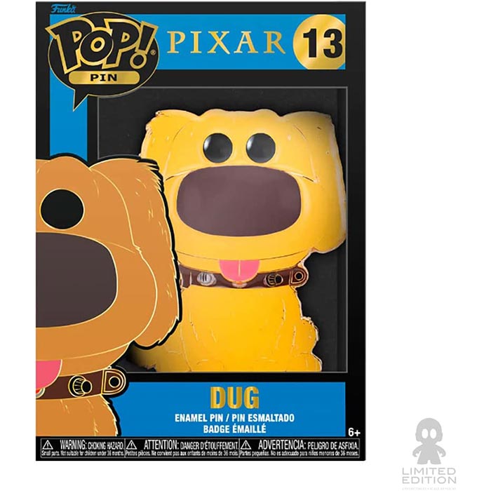 Squirrel spotter and trained tracker, the loveable Dug is ready to follow you home as a Loungefly Pixar Pop! Pin. Welcome Dug on your journeys wherever they may take you. There s a 1 in 12 chance you may find the flocked chase variant. Pin features gold-colored hardware, and a built-in stand. Enamel pin is approximately 4-inches tall.