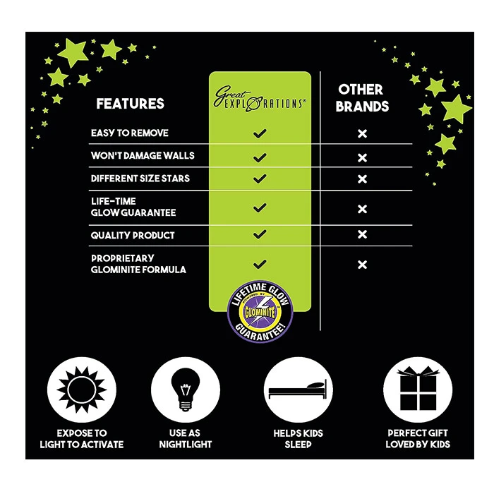 University Games-Glow In The Dark Pack. Transform your ceiling or wall into a universe complete with glowing galaxies and dazzling constellations. This package contains plastic glow-in-the-dark stars and adhesive putty. Comes in a variety of colors and quantities; Each sold separately. WARNING: Choking Hazard-small parts. Not for children under 3 years.
