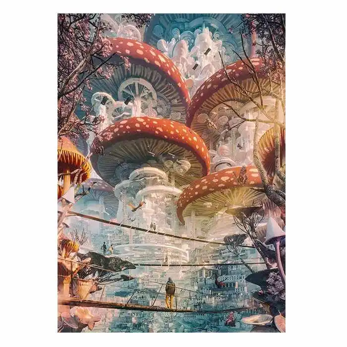 Embark on a journey through the extraordinary with Shroomland, a mind-bending jigsaw puzzle from Heye. This 1000-piece masterpiece showcases surrealistic artwork that defies logic and sparks curiosity. Measuring 20″ x 28″, this puzzle is perfect for puzzle enthusiasts aged 12 and above, offering an immersive experience that transports you to a world where mushrooms come alive with vibrant colors and whimsical shapes. Each piece is crafted with precision, ensuring a seamless fit and allowing you to immerse yourself in the enchanting realm of surrealism. Get ready to lose yourself in the magic of Shroomland.