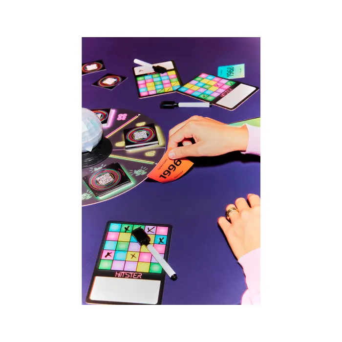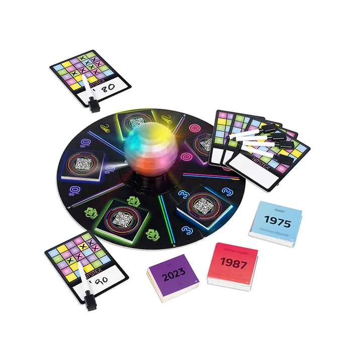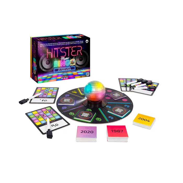 Get ready to spin the disco ball and dance to the beats in Hitster Bingo! Spin the disco ball to reveal the category, scan the card, and let the music play. Guess the decade, identify singers or bands, pick the exact year, or determine whether it’s before or after the 2000s.