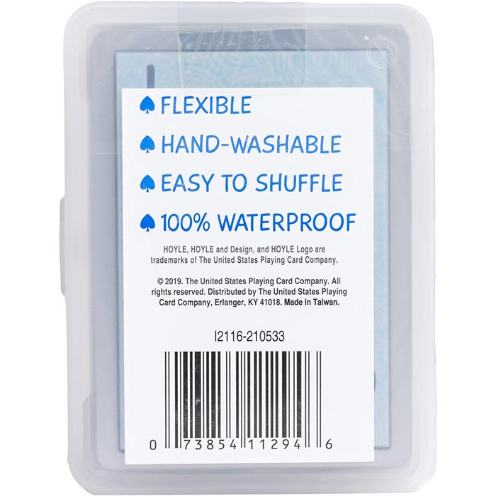 Hoyle Clear Plastic Playing Cards are ultra-durable, waterproof and make any game more fun by being clear. Perfect for the beach or camping, these cards are well-suited for almost any wet or humid situation.