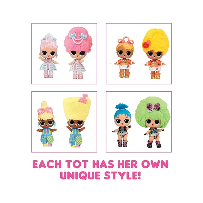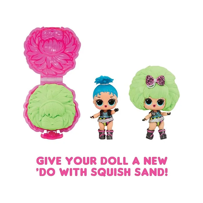 Introducing L.O.L. Surprise! Squish Sand Magic Hair Tots! Squeeze, break, and squish open the Squish Sand to reveal, color, surprises, and glitter! Put your tot in the mold with your sand to create a brand-new Squish Sand hairstyle that lasts 3-4 minutes, then do it all again!
