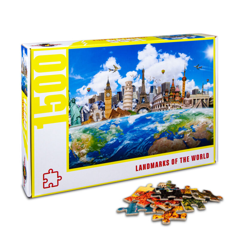 Landmarks Of The World is a 1500 pieces jigsaw puzzle from Mind Games. This challenging puzzle is made of high quality cardboard and snaps together easily with a precise fit.
