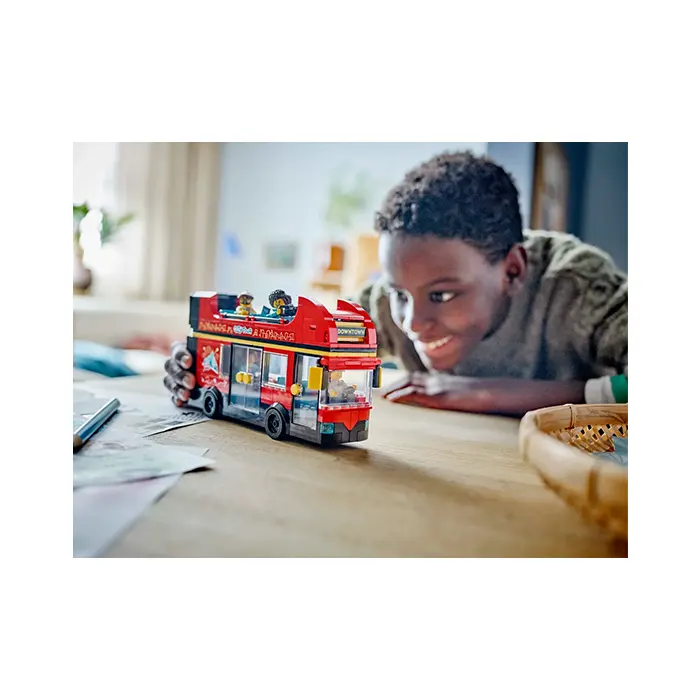 Kids can embark on exciting city adventures with the LEGO City Red Double-Decker Sightseeing Bus (60407), perfect for ages 7 and up. This iconic bus features a rotating destination display, a lower deck, and an open-air sightseeing deck for passengers.