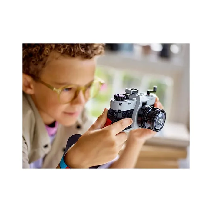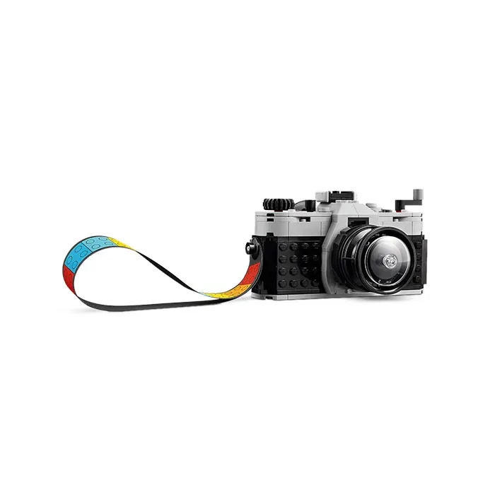 Inspire imaginative play with the LEGO Creator Retro Camera (31147) 3in1 building set for boys and girls aged 8+. This iconic camera toy features a moving lens, buttons on the top to take a photo, an opening back to place a brick-built piece of film inside and a multicolored textile strap to carry it. There are also 6 stickers for kids to add to the film to represent their photos.