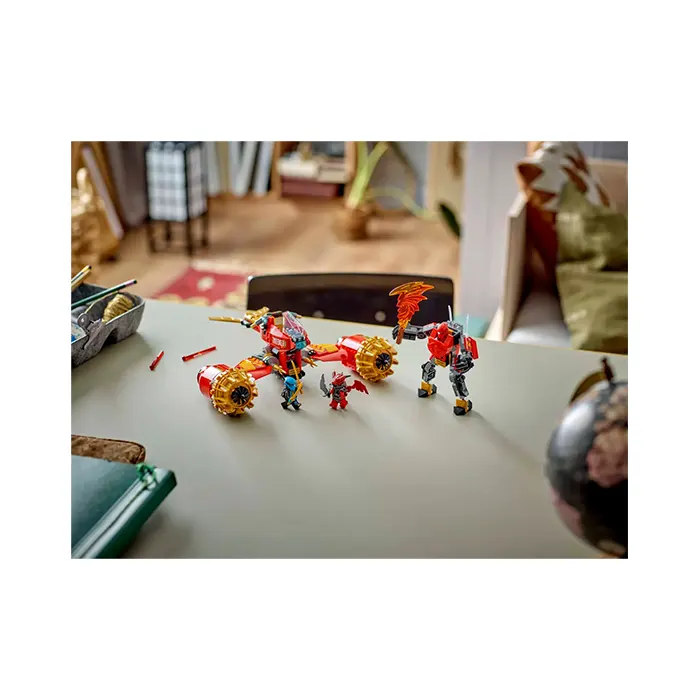 Kai’s Mech Storm Rider (71830) combo ninja toy lets boys and girls aged 7 and up recreate exhilarating scenes from season 3 of the NINJAGO Dragons Rising TV show. Kids can play with the large action toy before they separate it into 2 smaller vehicles: Kai’s mech with posable head, arms and legs, a cockpit and a large storm blade accessory, and Nya’s flying motorbike toy with a cockpit, movable wings and 2 spring-loaded shooters. This ninja vehicle playset comes with 3 NINJAGO minifigures: Kaiarmed with 2 crystal katana sword accessories, Nya armed with 2 golden katana sword accessories and a villainous Dragonian Warrior with its own sword accessory so kids can role-play epic battles. The LEGO NINJAGO range of sets and buildable ninja toys for kids includes dragons, vehicles and temples so fans can role-play adventures with their heroes. Each ninja playset can be created with the LEGO Builder app, which guides you and your child on an easy and intuitive building adventure.