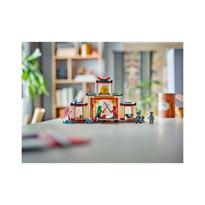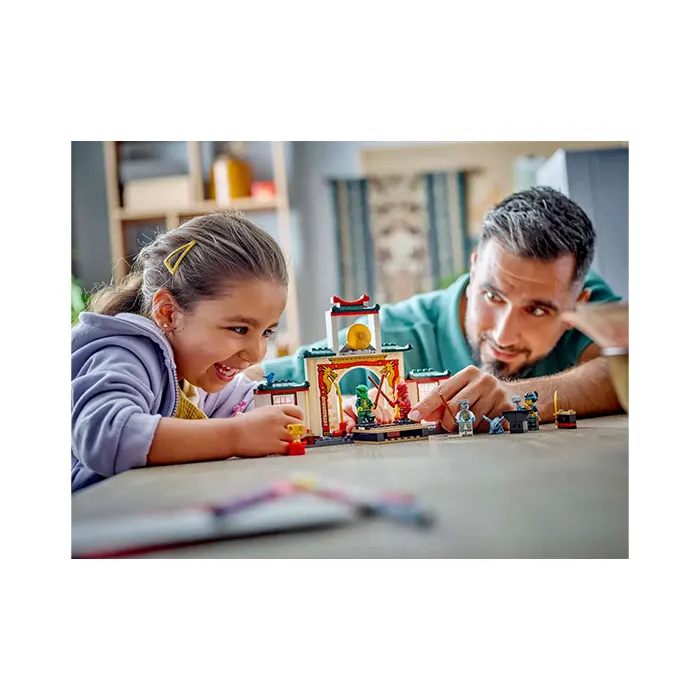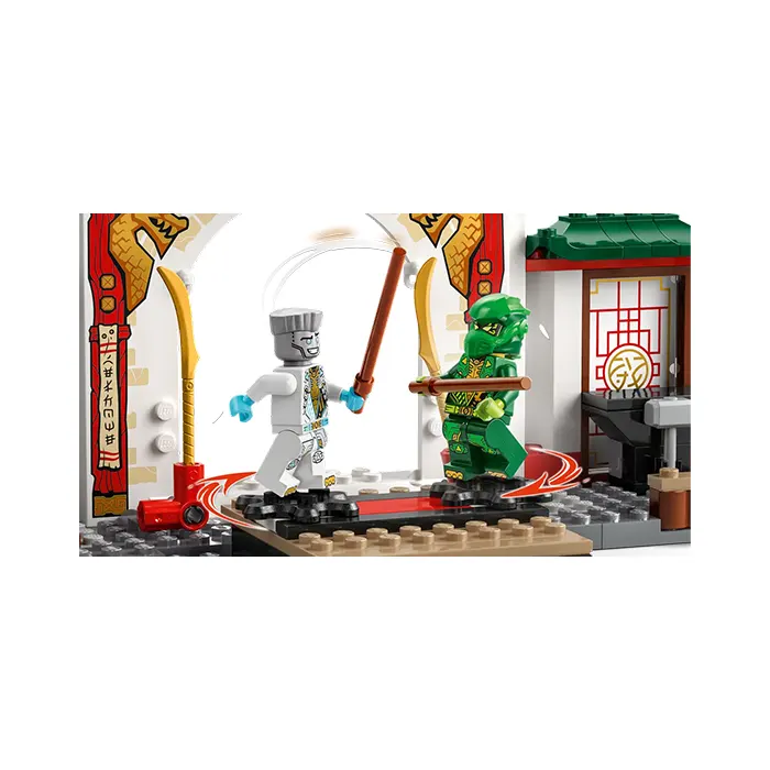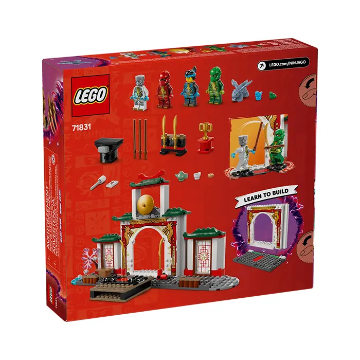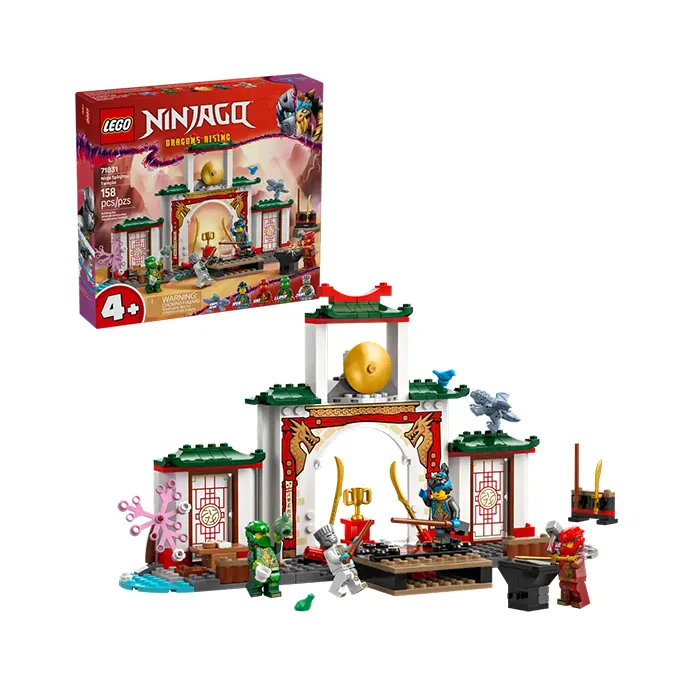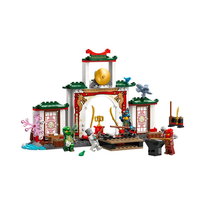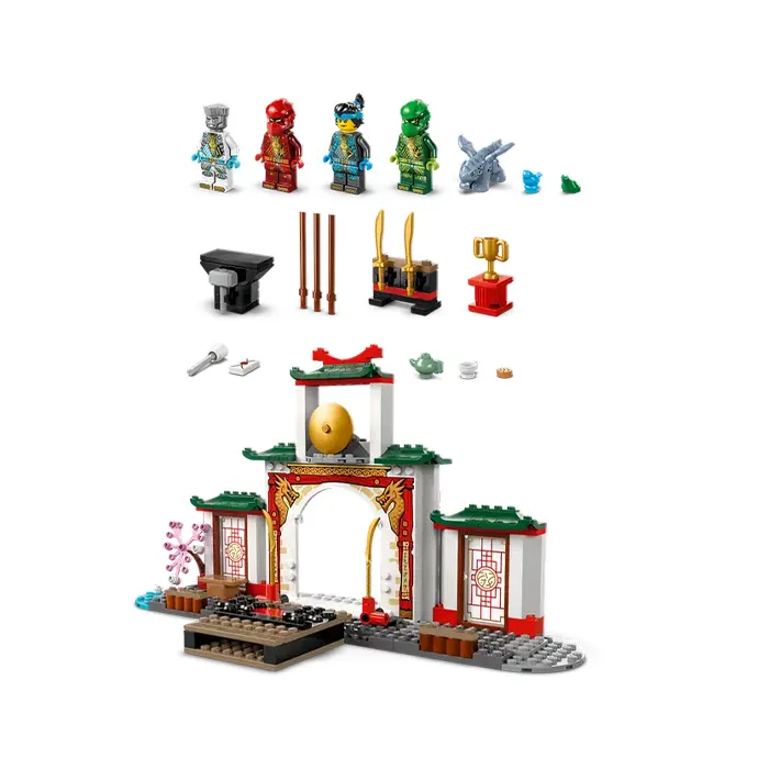 Delight ninja toy-loving kids with the LEGO NINJAGO Ninja Spinjitzu Temple (71831). This dragon toy playset allows children aged 4 and up to recreate adventures from season 3 of the NINJAGO Dragons Rising TV show. This ninja toy role-play set is ideal for pretend play with a NINJAGO tournament stage, garden, teahouse and weapons training area. This LEGO set comes with 4 NINJAGO minifigures: Zane, Nya, Kai and Lloyd, plus a Baby Riyu dragon toy so kids can role-play ninja action. The minifigure s can be placed on 2 turning plates for epic battles, and for added play value there is a large range of accessories: ninja weapons including 2 swords and 3 staffs, as well as a hammer, bird, frog, trophy, cookie and letter. This ninja toy has been designed to provide a fun experience for children aged 4 and up who are discovering the joy of building with LEGO bricks. The adventure toy comes with a Starter Brick – a partly constructed base that gets kids building quickly and with confidence.
